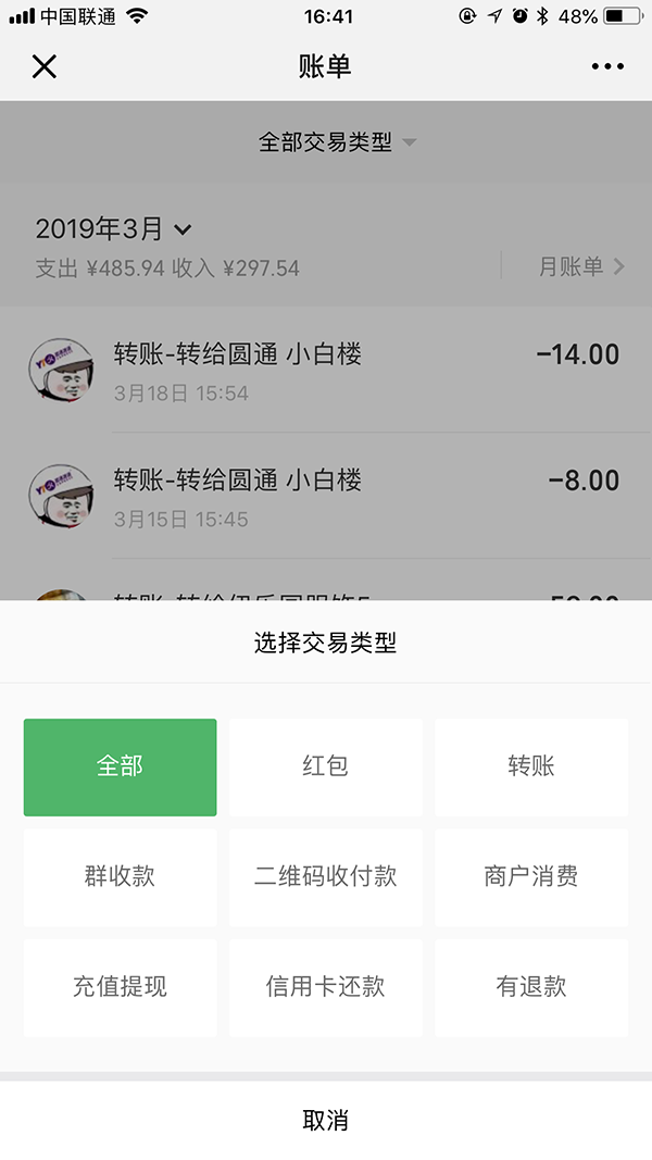 支付寶的賬單功能相信很多的人都使用過,其實(shí)微信也有這個功能,若想要查詢自己的微信賬單,首先打開微信支付,下方功能就有賬單查詢,還可以選擇交易類型,這個月剁手了多少錢,一目了然。