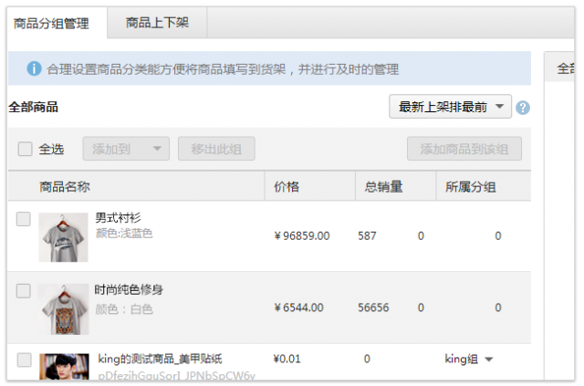 2. 選擇完貨架之后,商家可以將分組管理里面的商品添加到貨架中。