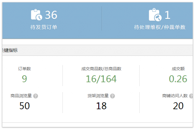 可以查看小店所有的數(shù)據(jù)信息:訂單數(shù)、成交量等。