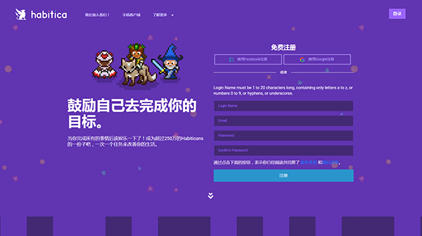 網址:https://habitica.com/static/home