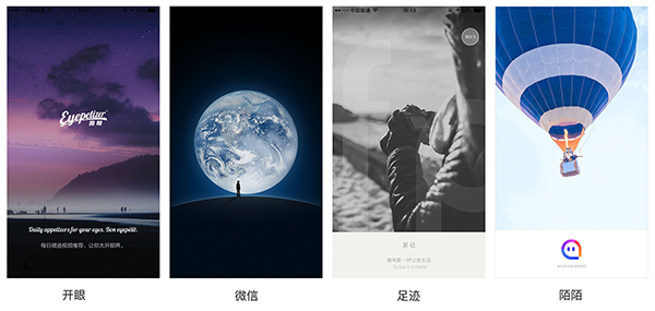 C、采用產(chǎn)品調(diào)性或企業(yè)品牌相關(guān)的圖片:為了能夠和用戶產(chǎn)品情感上的共鳴,很多的app使用和產(chǎn)品調(diào)性匹配的圖作為閃屏,大家最熟悉的就是微信,之前微信換閃屏的熱點(diǎn)已經(jīng)刷爆朋友圈,相信大家都關(guān)注了。不可否認(rèn)這類閃屏要能突出產(chǎn)品本身的調(diào)性,但使用也要謹(jǐn)慎,因?yàn)轱L(fēng)險(xiǎn)較大,很容易適得其反。