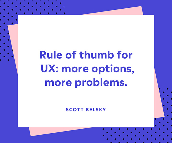 若無法真正理解人與設備之間的關系,那么在設計時,總會不自主的認為用戶和設計者一樣了解產品,或認為用戶的「主觀能動性」足夠強,繼而為設備和產品增加更多的功能,更多的選項,然而事實證明這個觀念是錯的。更多的選擇和更多的選項往往會帶來更大的認知負荷,這一點是違反普通人的認知習慣的,人們面對更多選擇時,很難作出決定。所以給用戶少一點選擇,降低認知負荷,提高任務的完成度,這樣整個用戶歷程也更順暢。