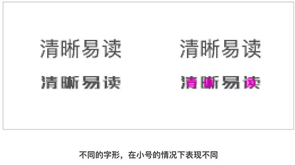C、字形的場景適應:由于不同的字形給用戶帶來不同的感受,因場景需要,在一定情況下我們會選擇自定義字體。當我們選擇不同的字體時,需考慮字體在產品內不同模板下的易讀性問題。
