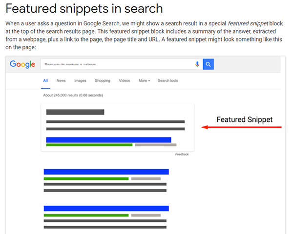 精選片段最近在SERP中得到了大量關注,而且這種情況只會持續到2019年。據谷歌稱,當用戶提問時,這些小信息塊可能會顯示在結果頁面上。