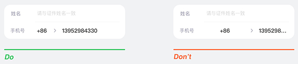 輸入域的長度與預期輸入的內容成正比,確保輸入字段長度符合用戶心理預期,并能夠在表單中完整呈現。
