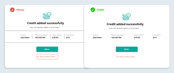 若想要將兩個(gè)不相關(guān)的元素分隔開來,使用分割線似乎理所應(yīng)當(dāng),但不得不說這種方式已經(jīng)過時(shí),而更貼合當(dāng)下、更好、更優(yōu)雅的呈現(xiàn)方式是“留白”,因?yàn)榉指罹€的方式不僅是因?yàn)檫^時(shí),不僅會(huì)讓掃視頁面花費(fèi)更長的時(shí)間,而且增加的信息噪音會(huì)影響整體的層次結(jié)構(gòu)。而留白就會(huì)好很多。