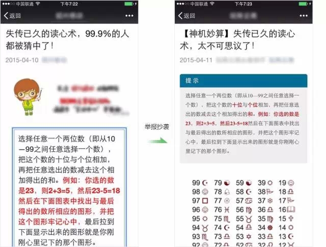 A: 用戶發現抄襲行為均可進行舉報,但是用戶發起舉報時,需舉證被抄襲的公眾號文章,微信公眾平臺會給舉證的被抄襲公眾號發送確認通知。平臺規定只有內容的權利人才能就抄襲舉報進行確認并發起舉報:如內容確實為該公眾號創作,則可以點擊確認,同時正式發起舉報流程;如被舉報內容并非該公眾號創作,則不能進行確認發起舉報。對于諸如“一些公眾號拿在網上流傳的 或 同樣未經授權的內容來舉報他人抄襲”以及”其并非原作者來舉報他人抄襲“等的情況,對于發現的此類行為微信公眾平臺將進行一定期限內的封號處理,情節嚴重的將永久封禁帳號。