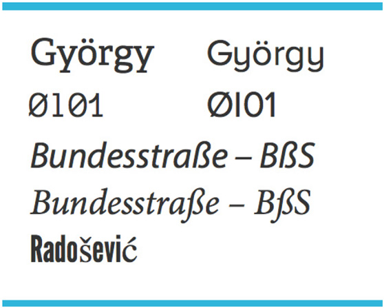 在東南歐,姓氏經常是以“?”或“?”結尾的,沒人喜歡他們的名字里有被剝奪了發音的字母,更糟的是還用后備字體來渲染。丹麥和挪威使用“?“,德國使用“?”,這些只存在于拉丁字母表內。