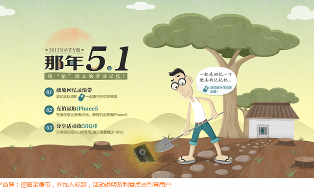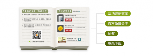 現(xiàn)在我們見到的大部分推廣活動往往都以折扣,抽獎作為噱頭。長期的價格戰(zhàn)轟炸來刺激消費心理的方式已經(jīng)讓用戶形成一定的疲勞感甚至是抵觸感,因此,我們思考能否在勞動節(jié)這個比較傳統(tǒng)但是特點鮮明的節(jié)日中通過新的創(chuàng)意來達到我們活動目的呢?