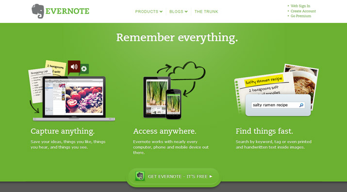 Evernote屬于分類筆記應(yīng)用類中最優(yōu)秀的app設(shè)計(jì)工具,它能夠在不同平臺上工作,如:智能手機(jī)、平板電腦、或者通過Cloud在臺式電腦上使用,只要是用它保存的東西,你可以在任何時間任何地點(diǎn)進(jìn)行存取。同時,再加上Web Clopper和Skitch這樣的插件,你可以將喜歡的網(wǎng)頁保存到個人文件夾中,這是創(chuàng)建書簽和閱讀清單的最佳工具。