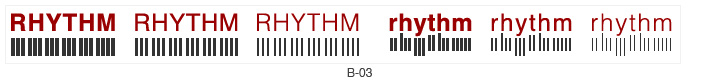 單行文字排版的橫向韻律:根據字體的粗細設定節點的粗細和排布疏密,就能產生輕重緩急高低錯落的節奏感和韻律感,如圖(B-03)。
