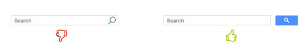 站內搜索框的設計其實并不簡單,并非是放一個長條方框就可以的,還需要為搜索框配上一個有指向意義的按鈕,可以是文字也可以是圖片,讓用戶有意認的去點擊,這樣就可以對開始搜索這個操作有一個很直觀的感受。