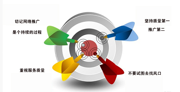 網絡營銷推廣,其實也沒有很多網絡公司說的那么神秘?網絡營銷推廣的前提,是你的產品ok,你的服務ok,在這個前提下你再開展一系列的推廣,包裝,營銷活動,品牌營銷策劃等!很多企業都是本末倒置,看不清,以為我就是大把的去互聯網推廣,大把的去投放廣告就行,那只能是“竹籃打水一場空”。